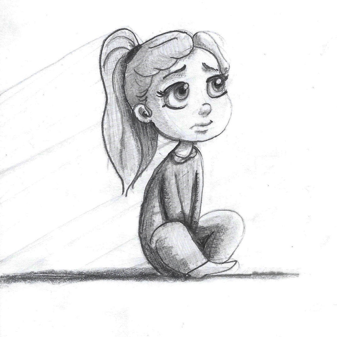Little Girl Sit And Sad